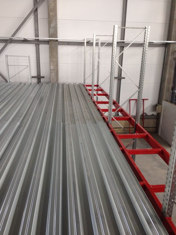 Для склада московской компании «БМГК» мы с удовольствием предложили мезонинную конструкцию на базе фронтальных стеллажей серии СпФ, на что тут же получили одобрение. Мезонин – это мощная, практичная, надежная и удобная стеллажная система. Используя фронтальные стеллажи серии СП, если позволяют условия и габариты помещения, можно возвести добротный 6-этажный мезонин высотой чуть более 14 метров. Хранить груз можно как на полках, так и на поддонах/европоддонах.
