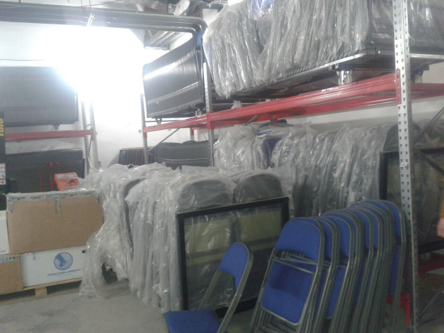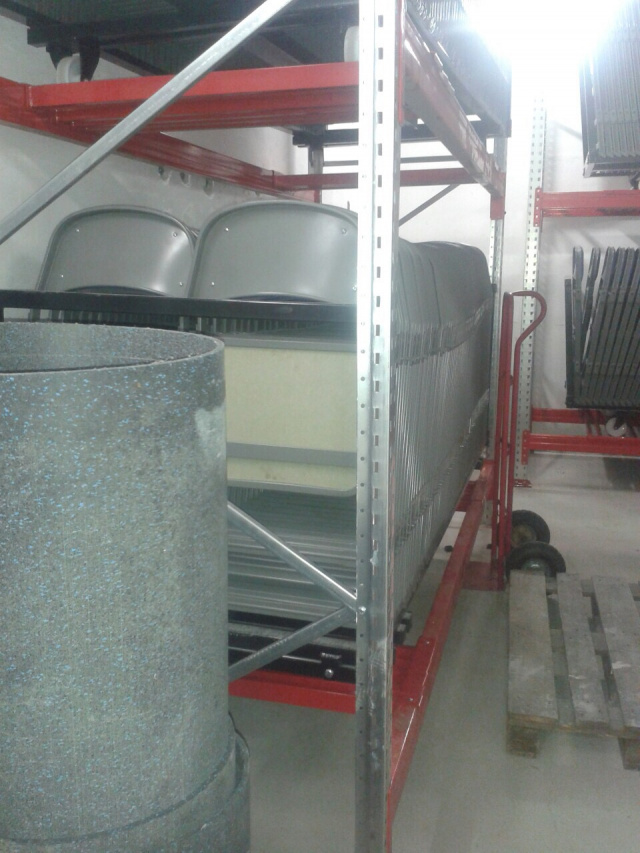 Компания «ПромСтеллаж» изготовила стеллажи трёх типов. Полочные стеллажи серии СтМ с нагрузкой на полку до 150 кг, полочные стеллажи серии СтУ с нагрузкой на полку до 400 кг, паллетные стеллажи серии СПф и нестандартные стеллажи для складирования тележек (тележки для раскладных стульев).